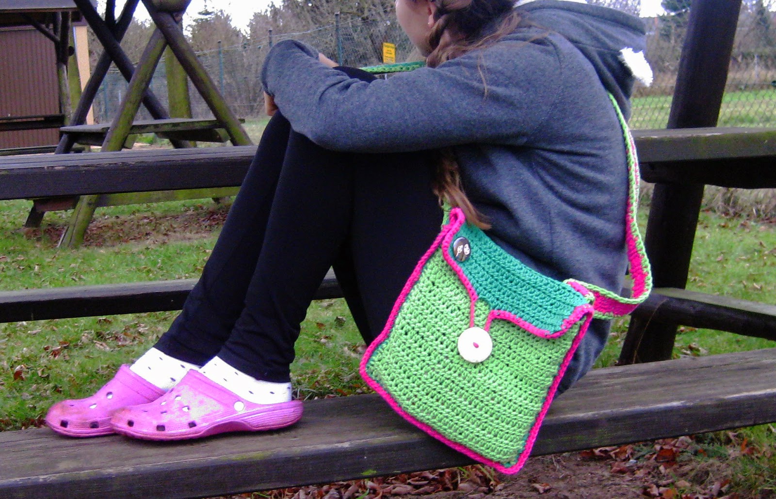 soll ich Euch mal was verraten? Aimee ist noch immer im Häkelfieber! Wer unseren Blog schon etwas länger kennt, hat vielleicht im November gesehen, dass Aimee vom Häkelvirus befallen wurde. Im Oktober hatte sie ihr erstes eigenes Häkelprojekt beendet, das wir dann Anfang November auf Jaimees Welt zeigen konnten. Wer neugierig ist, wovon ich gerade rede, der klicke HIER. Nun schaut mal, womit mich Aimee an Heiligabend überraschte. Ein neues Umhängetäschchen, das sie wieder ganz im Alleingang gehäkelt hat.