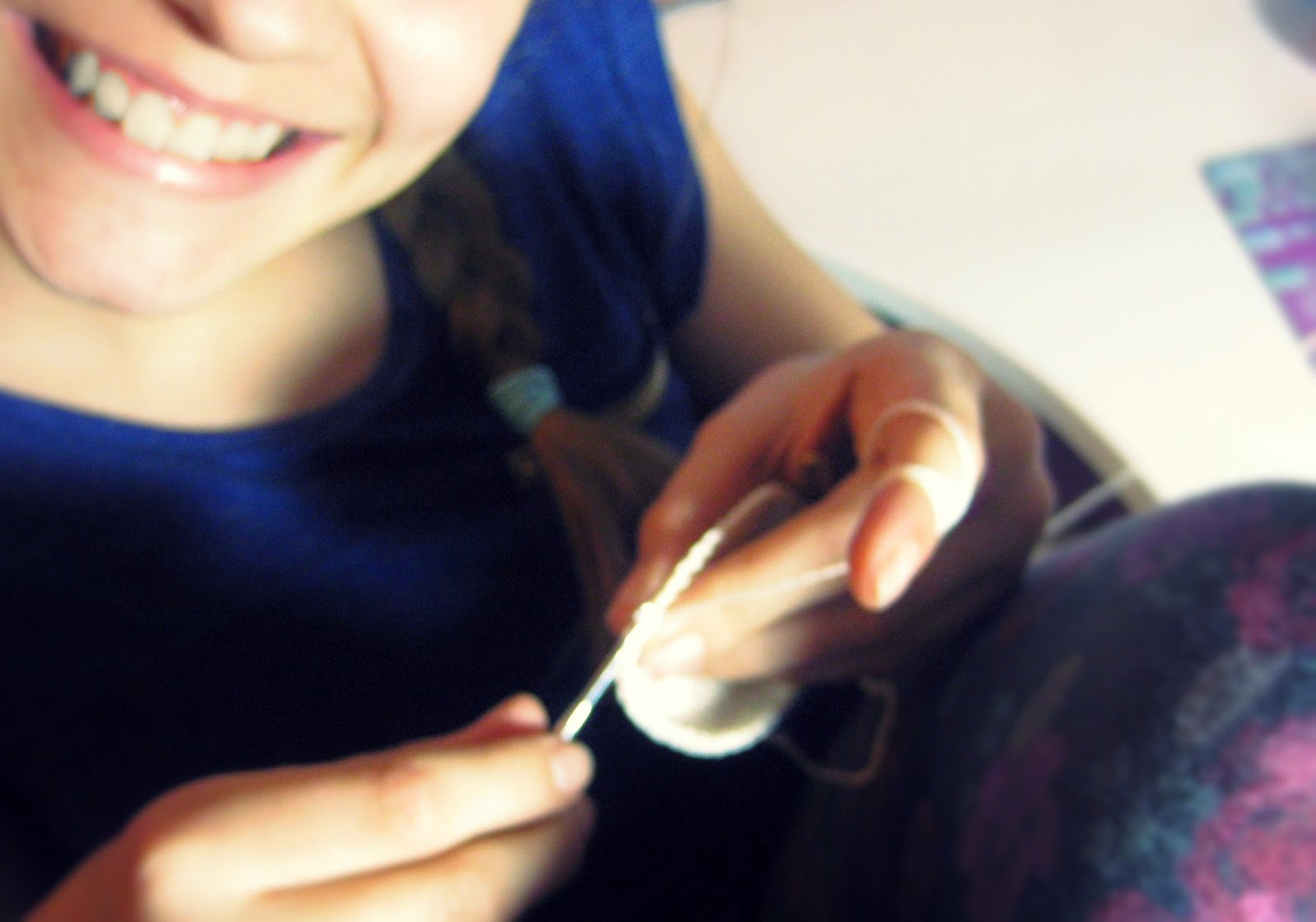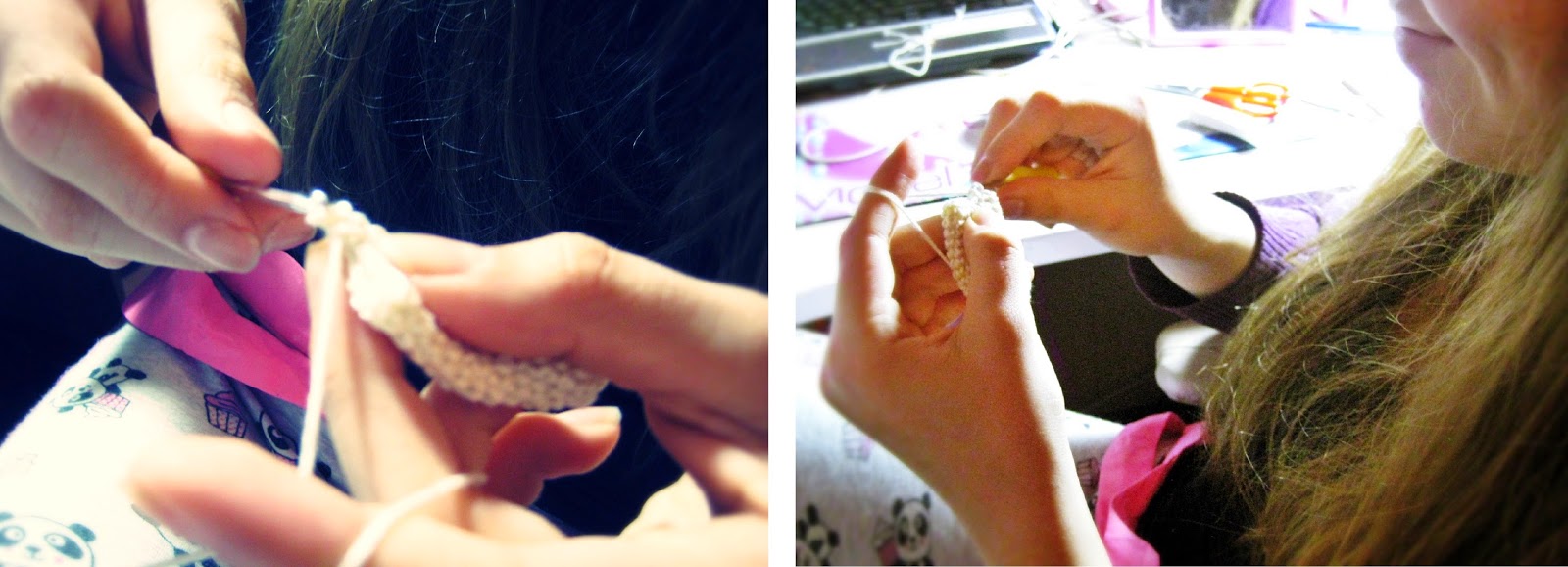 Aimee beim Häkeln des Kopfes … er nimmt schon Formen an!