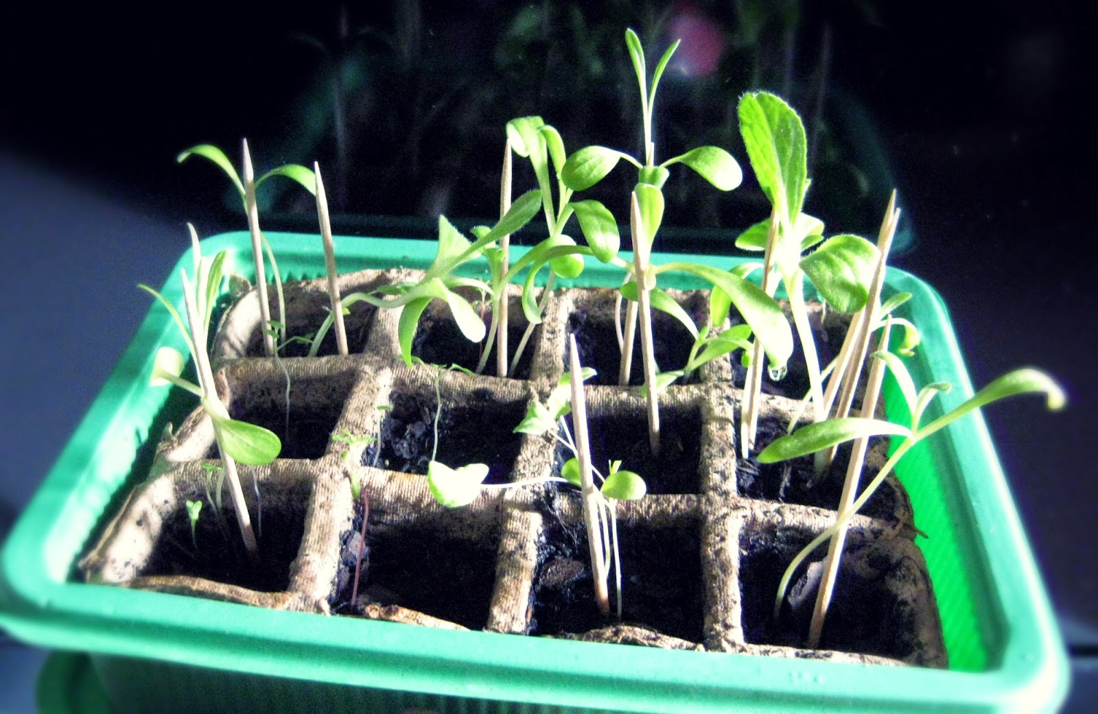 Die Essbaren Blüten wachsen eindeutig schneller! Sowohl auf unserer Fensterbank als auch im Gewächshaus hatten sie zuerst die Köpfchen aus der Erde gesteckt. Auf die ersten grünen Pflänzchen des Wildsalats mussten wir viel länger warten. Während es beim Wild-Salat nach 4 Wochen so aussieht: