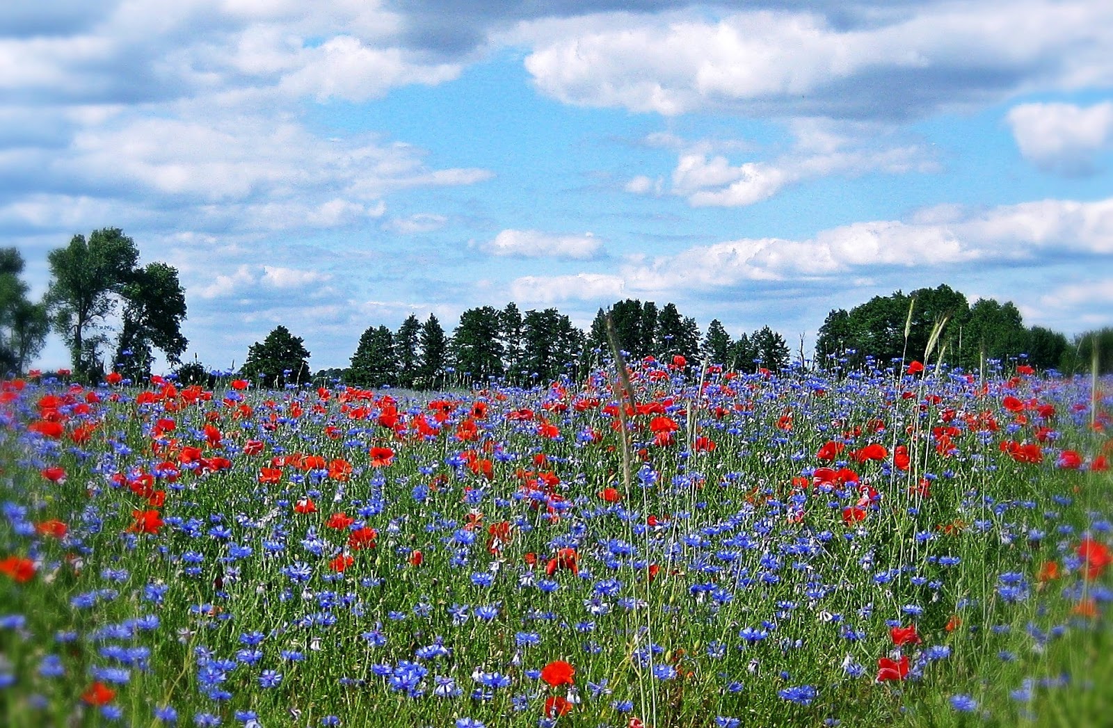 Was man auf den Fotos nicht ganz erkennen kann … die Wiese war schon beim Abblühen! Man kann eine Woche später zwar immer noch das Blaue und Rote Strahlen bis zur Bushaltestelle sehen. Aber bald werden sie nicht mehr da sein! Und dann bleiben uns nur noch die Fotos davon!