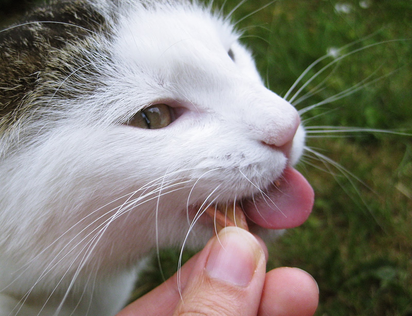 Aufpassen mussten wir, dass sie die Sticks wirklich abbeißt und nicht in einem Stück im Mund verschwinden lässt! Das Abbeißen dauert ein wenig, aber sie knabberte so lange darauf rum, bis sie ein Häppchen abbekam. Alternativ kann man die Sticks selbst in kleine Stückchen brechen und sie der Katze zuwerfen, was Ihr mindestens genauso viel Vergnügen bereitet! Nun weil es so schön war, noch zwei Fotos von unserer vierpfötigen Produkttesterin: