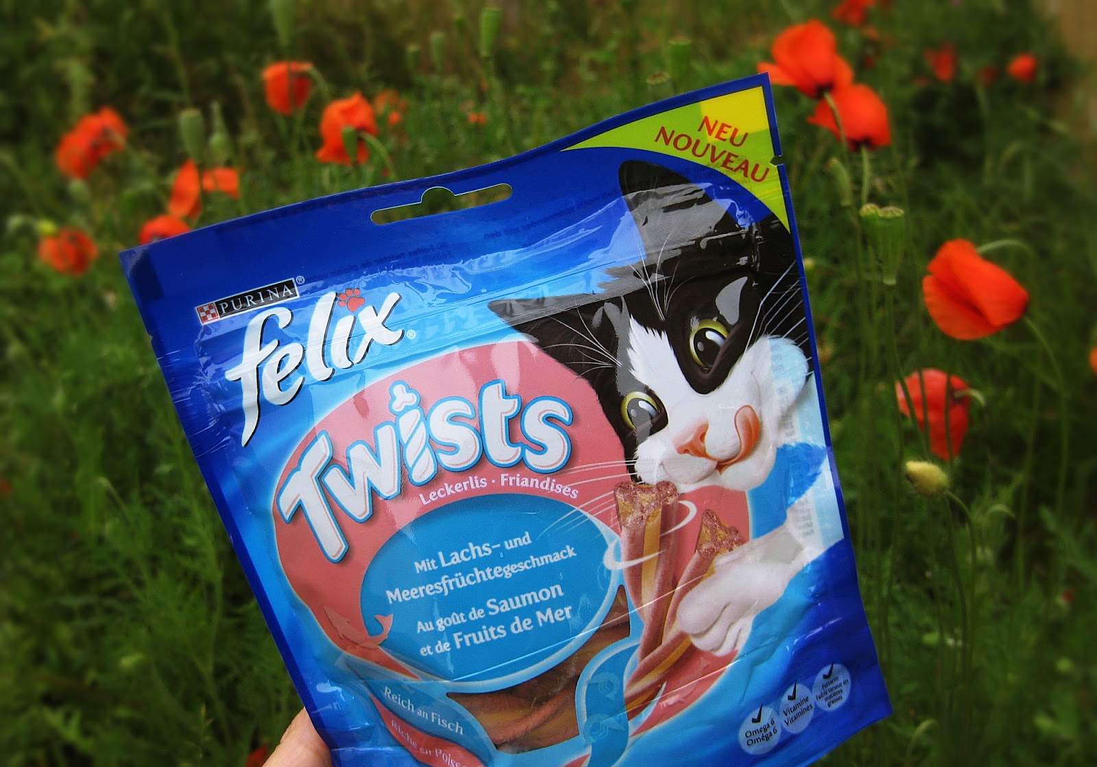 Felix hat mit den neuen Twist-Leckerlis, ein Produkt auf den Markt gebracht, das durch die spiralförmige Form mehr Spaß machen soll und wohl auch doppelt so köstlich ist. „Jeder Stick besteht aus zwei leckeren Geschmacksrichtungen (hier Lachs und Meeresfrüchte), ist reich an Fisch und ein Genuss für Ihre Katze.“ Die Sticks seien besonders fettarm und enthalten zusätzlich Vitamine und Omega 6.