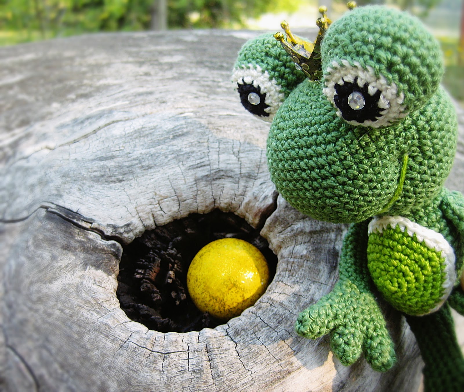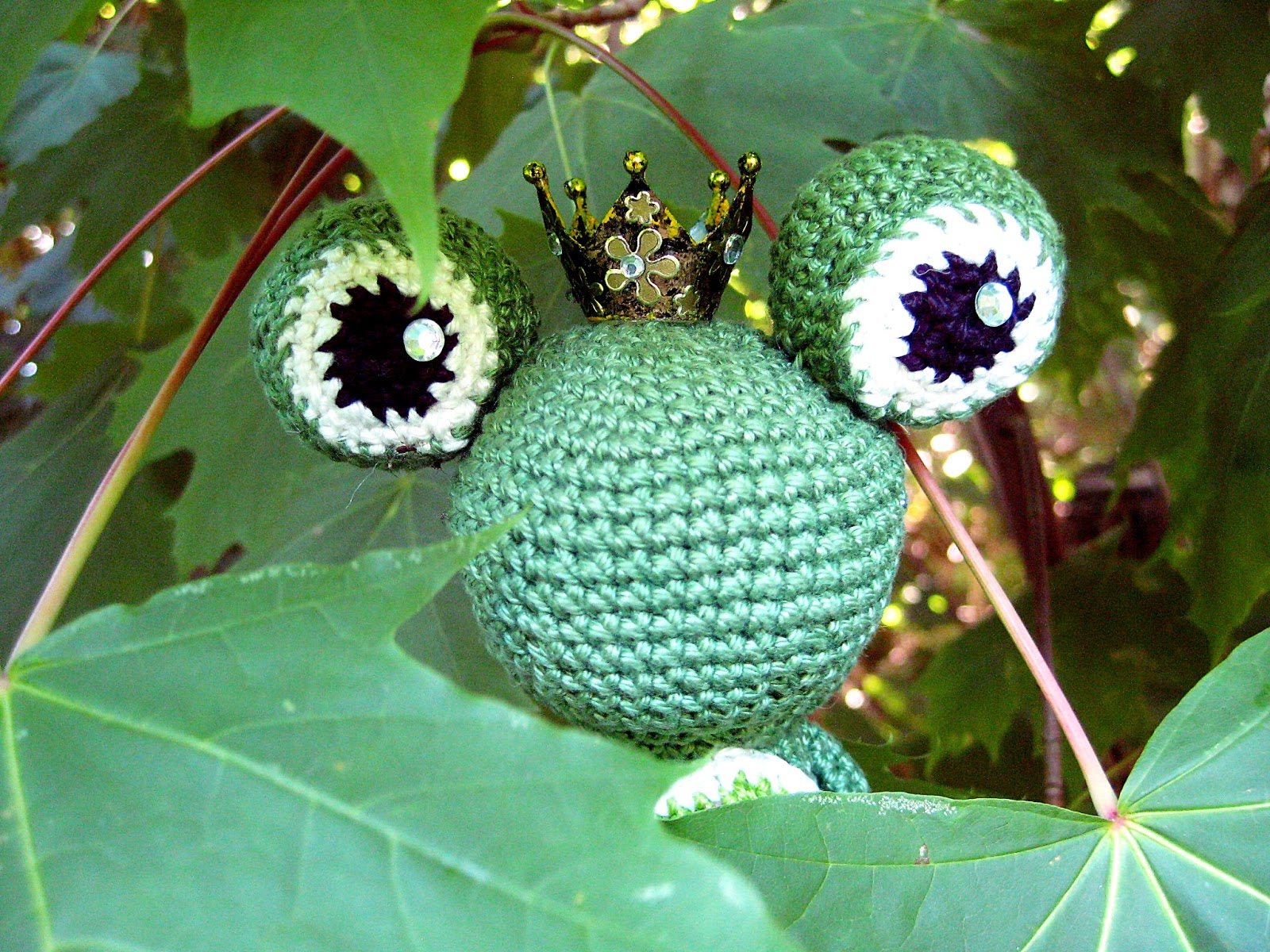Nachdem unser kleiner Froschkönig fertig war und seine Krone aufgesetzt bekam, Der Teich war nicht Teil der Häkelanleitung, den habe ich mir alleine ausgedacht, weil ich erstens kein blaues Filzstück zu Hause hatte und zweitens meinen Frosch viel lieber auf etwas Gehäkeltes setzen wollte. hat er sich heute Morgen auf in die Welt begeben, um diese zu erkunden! Auch hierbei sind ein paar Fotos entstanden, die wir Euch noch zeigen wollen!