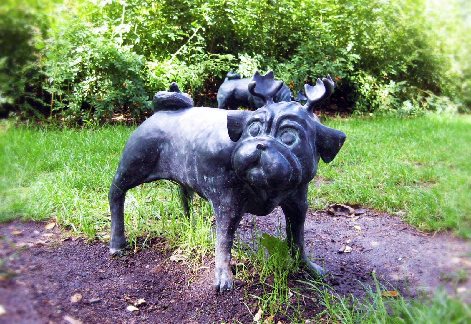 Die scheuen Waldmöpse sind ihrem Schöpfer Loriot, einem Ehrenbürger der Stadt, gewidmet. Loriot soll einst gesagt haben „Ein Leben ohne Mops ist möglich, aber sinnlos.“ Aus diesem Grunde wurden insgesamt 14 Waldmöpse in der Stadt „ausgewildert“. Man kann sie beim Schlafen, Schnüffeln oder auch beim Pipi machen beobachten. Wir haben leider nur diese beiden entdeckt.