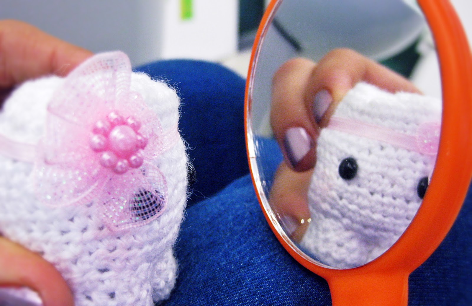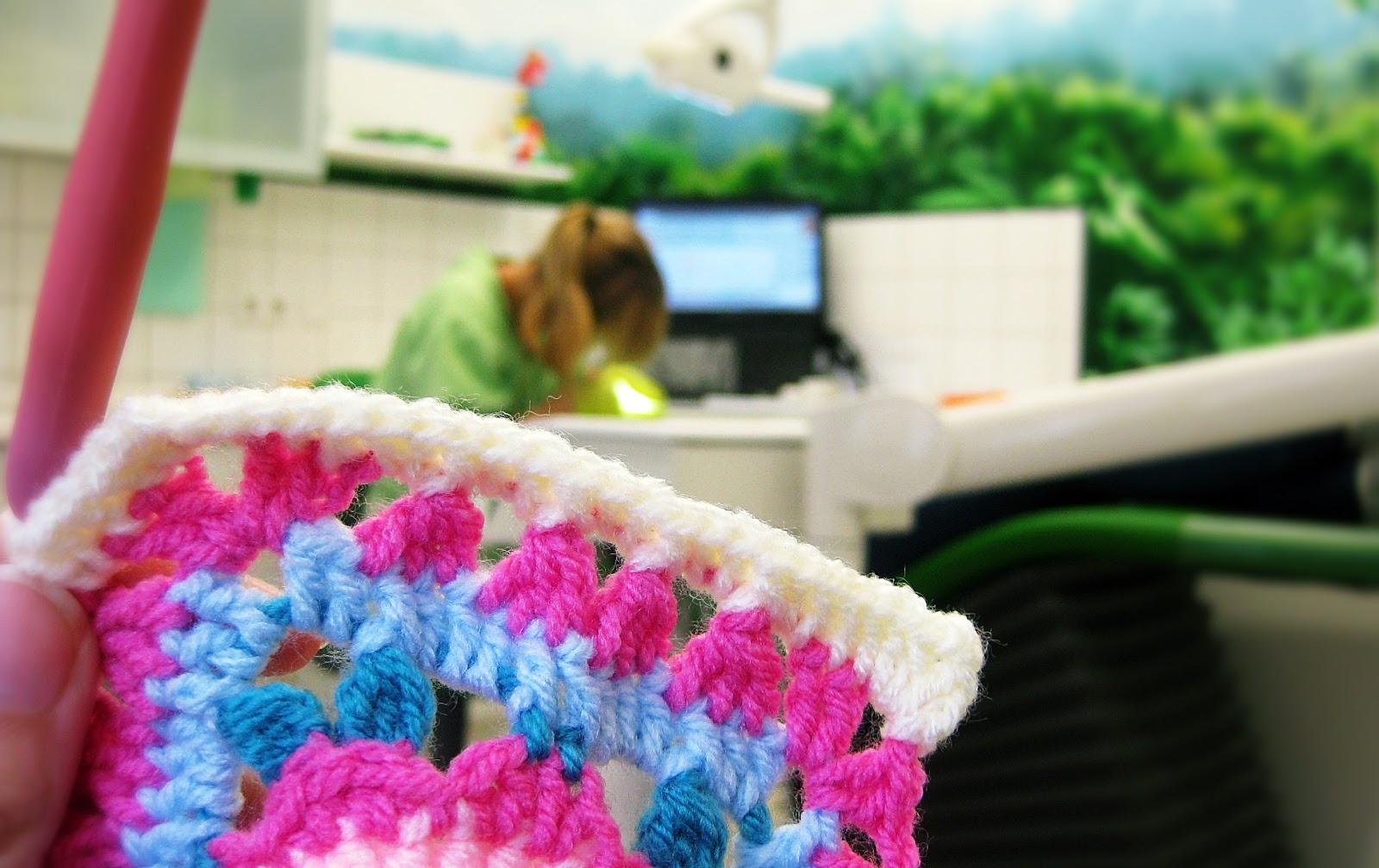 Das Zähnchen war schnell zuende gehäkelt und Aimee war sehr überrascht, als sie es zu sehen bekam! Auch beim Kieferorthopäde fiel es irgendwann jemanden ins Auge und wir hörten nur noch „Oh’s“ und „Ah’s“. Es kommt wohl nicht so oft vor, dass dort kleine Häkelzähnchen auftauchen 🙂