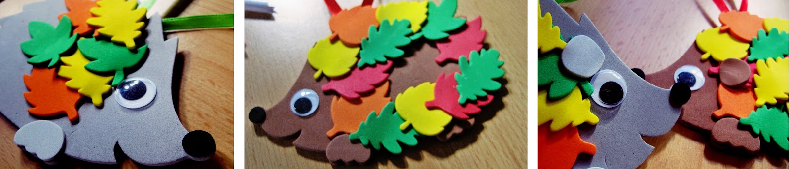 Die Moosgummigeschichte ist nicht so meins, Set 1 mit dem Igel und vor allem die Holzblätter sind richtig cool, Dass man aus so einfachen Dingen so schöne Dekoartikel zaubern kann ist echt cool 🙂