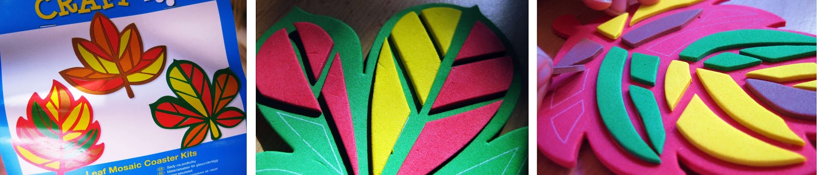 Mir haben die Untersetzer sehr gefallen! Vor allem, dass es nicht nur unterschiedliche Farben sondern auch verschiedene Blattformen gab! Mit den kleinen, bunten Moosgummiteilen kann man die Untersetzer schön herbstlich bekleben! Das Gestalten ist sehr einfach, auch meine kleine Cousine (6 Jahre alt) hatte damit gar keine Probleme und viel Spaß dabei! Schön finde ich auch, die Untersetzer nicht nur als Deko sondern auch praktisch geeignet sind!