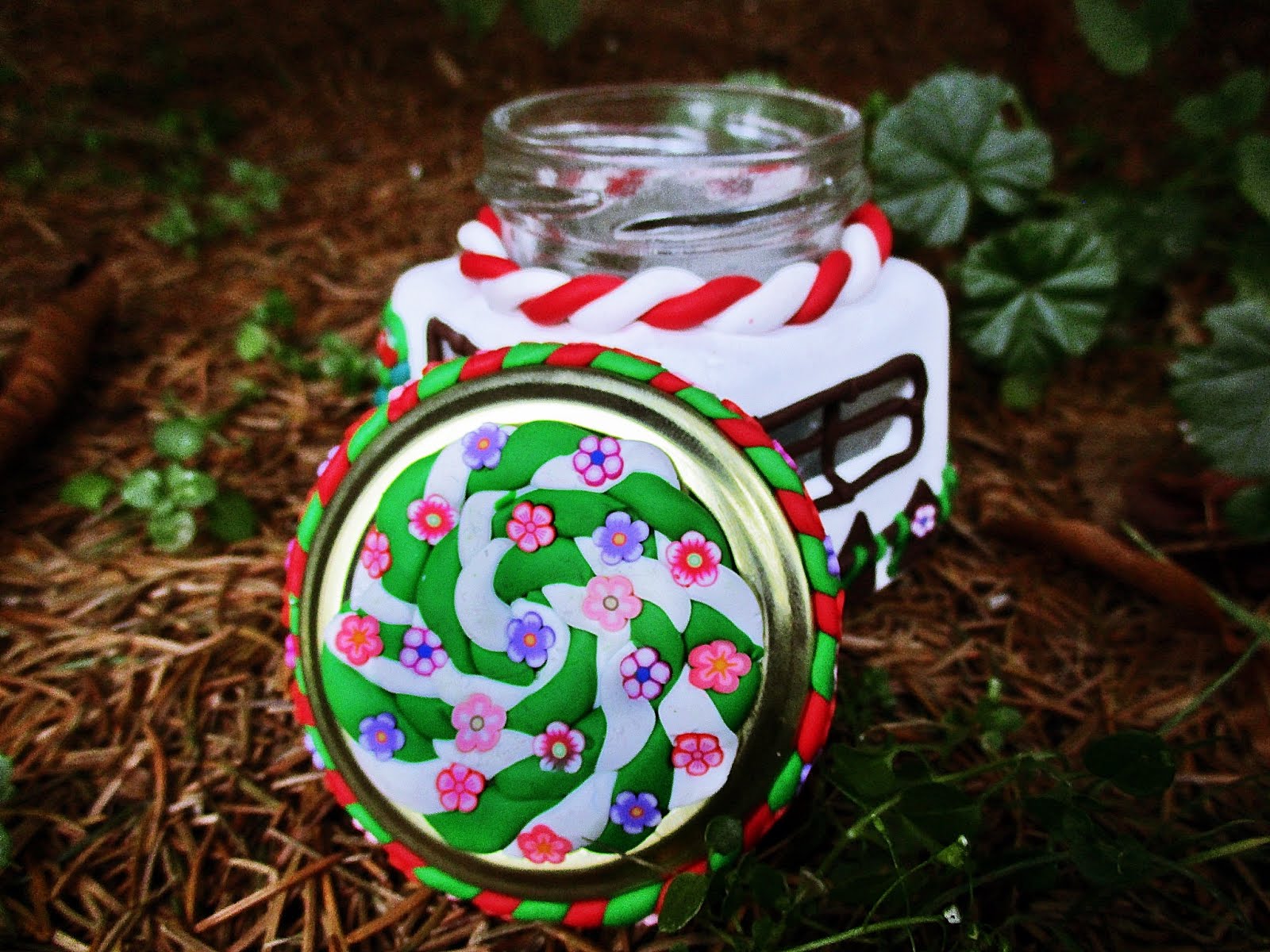 Vor vielen, vielen Wochen, als Weihnachten noch ein entferntes Datum im aktuellen Kalender war, stießen wir beim Herumstöbern im Internet auf eine ganz tolle DIY-Idee! Eine unbekannte Künstlerin hatte dort ein kleines Einmachglas gezeigt, das sie rundherum mit Fimo gestaltet hatte. Wunderschön und faszinierend. Das wollten wir auch unbedingt mal ausprobieren! Die Gläser dafür besorgten wir beim nächsten Shoppingbummel in der Realität und seitdem standen sie unberührt in unserer Bastelecke! Viele Wochen sind vergangen, mit jedem neuen Monat staubten sie mehr ein … aber nun haben wir sie zum Leben erweckt! Eines schönen Nachmittags holten wir unseren Fimo-Vorrat aus dem Bastelschrank und ließen unserer Fantasie freien Lauf! Die Inspiration dazu kam wie gesagt von der unbekannten Künstlerin, die Designidee, die Ihr heute seht, von uns.