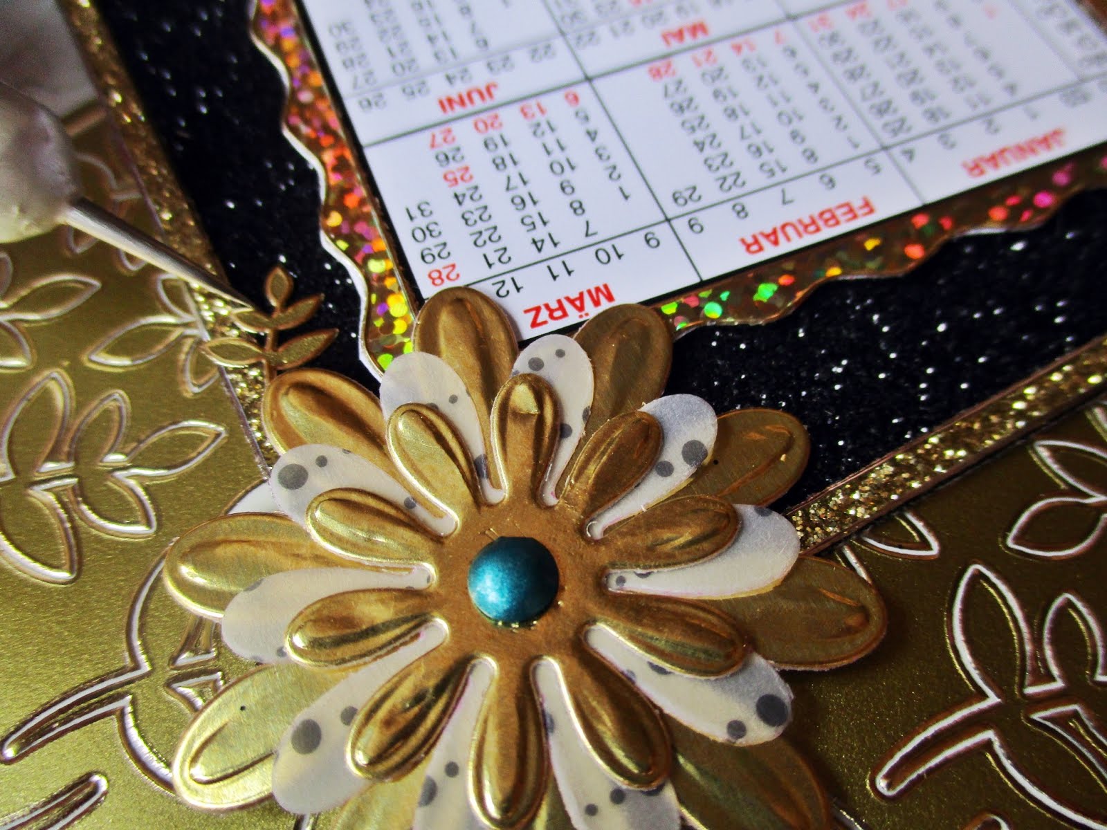 Wir mussten nicht lange überlegen, was wir aus den hauptsächlich goldenen und schwarzen Papieren gestalten! Ein Kalender bot sich geradezu an! Wir hatten vor kurzem zwei kleine Taschenkalender geschenkt bekommen und einen davon haben wir für unser Projekt verwendet. Hier seht Ihr ein paar Fotos, wie unser Tischkalender entstanden ist!