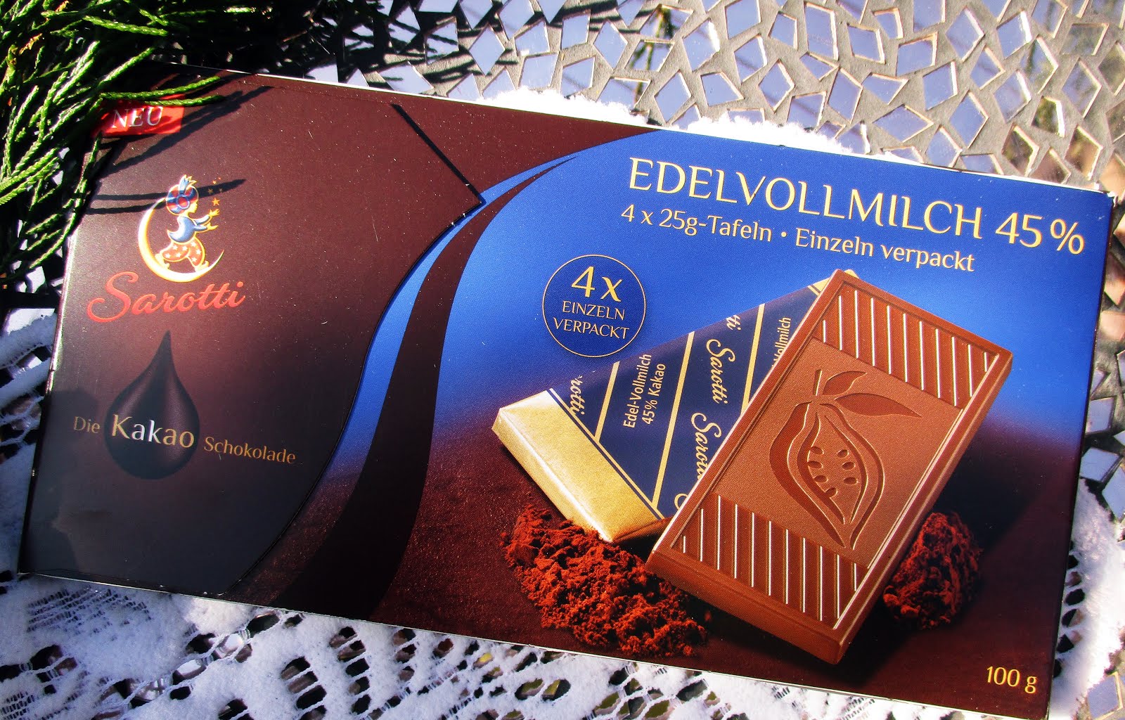 Beste Zutaten und zertifizierter nachhaltiger Kakao mit dem UTZ-Siegel sorgen für den bekannten, intensiven und vollmundigen Kakaogeschmack von SAROTTI. Die 100-g-Tafelschokolade aus Edelvollmilchschokolade ist portioniert in 4 Täfelchen und steht so für 4-mal unvergleichlichen Schokoladengenuss. Die kleinen Täfelchen sind außerdem in den 7 weiteren ausgewählten Sorten „Edelbitter“, „Vollmilch-Nuss-Mandel“, „Waldbeere“, „Kaffee-Sahne“, „Karamell“, „Edel-Nougat“ und „Marzipan“ erhältlich.