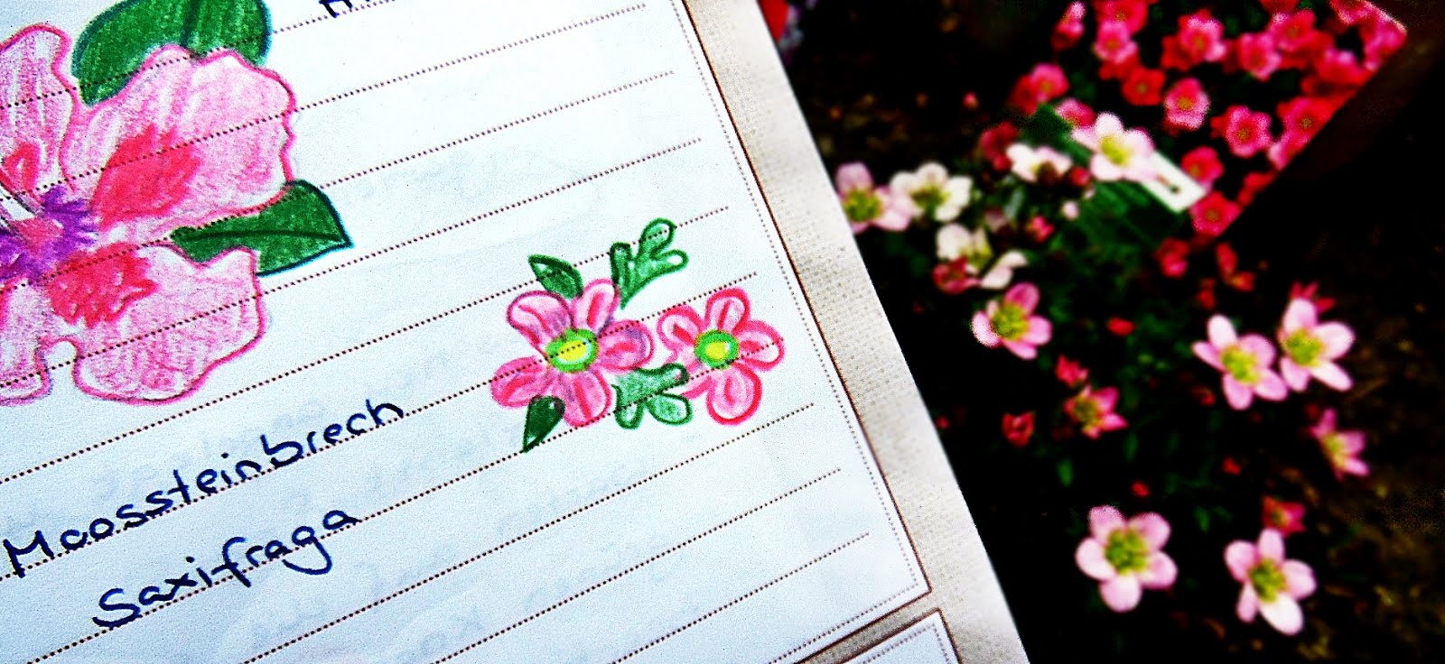 Wir haben einige Wochenseiten übrigens dazu benutzt, uns die Namen unserer vielen Blumensorten zu merken! Blumen sind zwar eine große Leidenschaft von uns, aber deswegen kennen wir noch lange nicht alle Namen auswendig! Dank der Bildchen wissen wir auch im nächsten Jahr noch, was uns besonders gut gefallen hat und welche nicht mehrjährigen Pflanzen wir gegebenenfalls nachkaufen sollten.