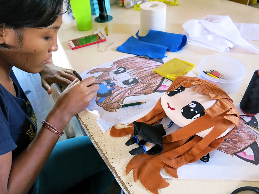 Spätestens beim vorletzten Bild (siehe oben) hatten auch wir Freudentränen in den Augen und konnten es nicht mehr erwarten, die Puppe komplett fertig zu sehen! Unsere Näherin Putri hat wirklich fabelhafte Arbeit geleistet und wir bedanken uns ganz herzlich bei ihr für die tolle Umsetzung unserer Zeichnung.