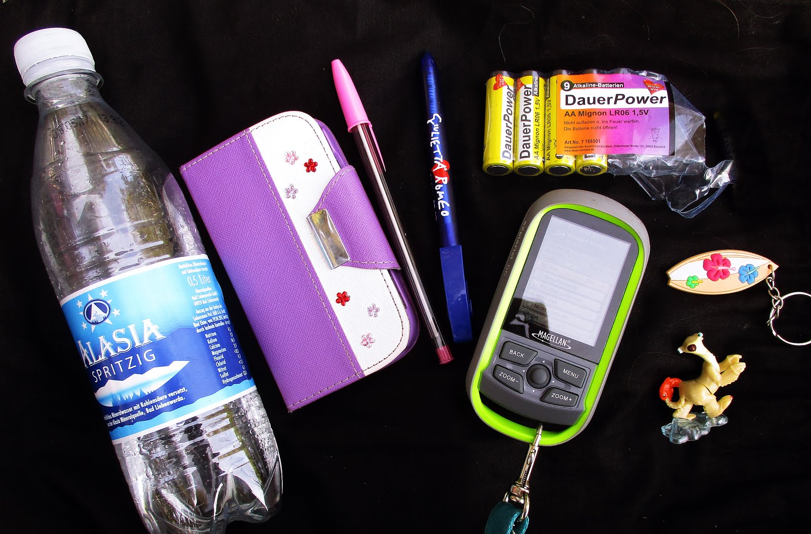 Aimee hatte schnell das Nötigste in einen ihrer Turnbeutel gepackt und schon konnte es losgehen. Wir hatten uns für heute 4 Caches vorgenommen und dazu einiges an Radweg vor uns. Beim heutigen Wetter war deshalb Durst vorprogrammiert. Aus diesem Grund ist das Mindeste, was Ihr auf einer Tour dabei haben solltet, folgendes: etwas zum Durst löschen, ein GPS-Gerät zur Ortung der Caches, falls nötig Batterienachschub fürs GPS, Stifte fürs Logbuch, kleine Tauschgegenstände und wer mag ein Smartphone 🙂