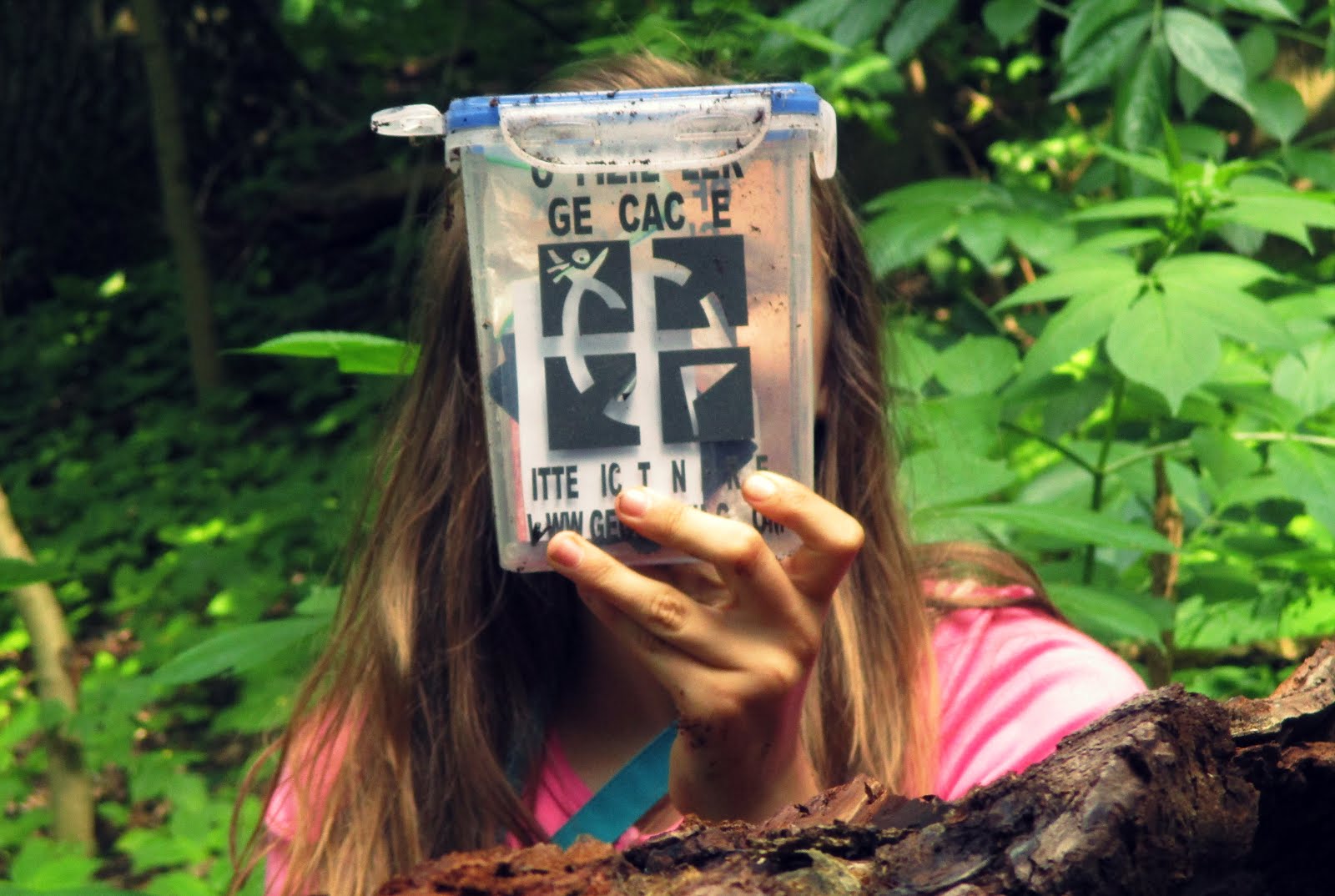 Aimee (damals 10 Jahre alt) mit einem unserer ersten Geocaches