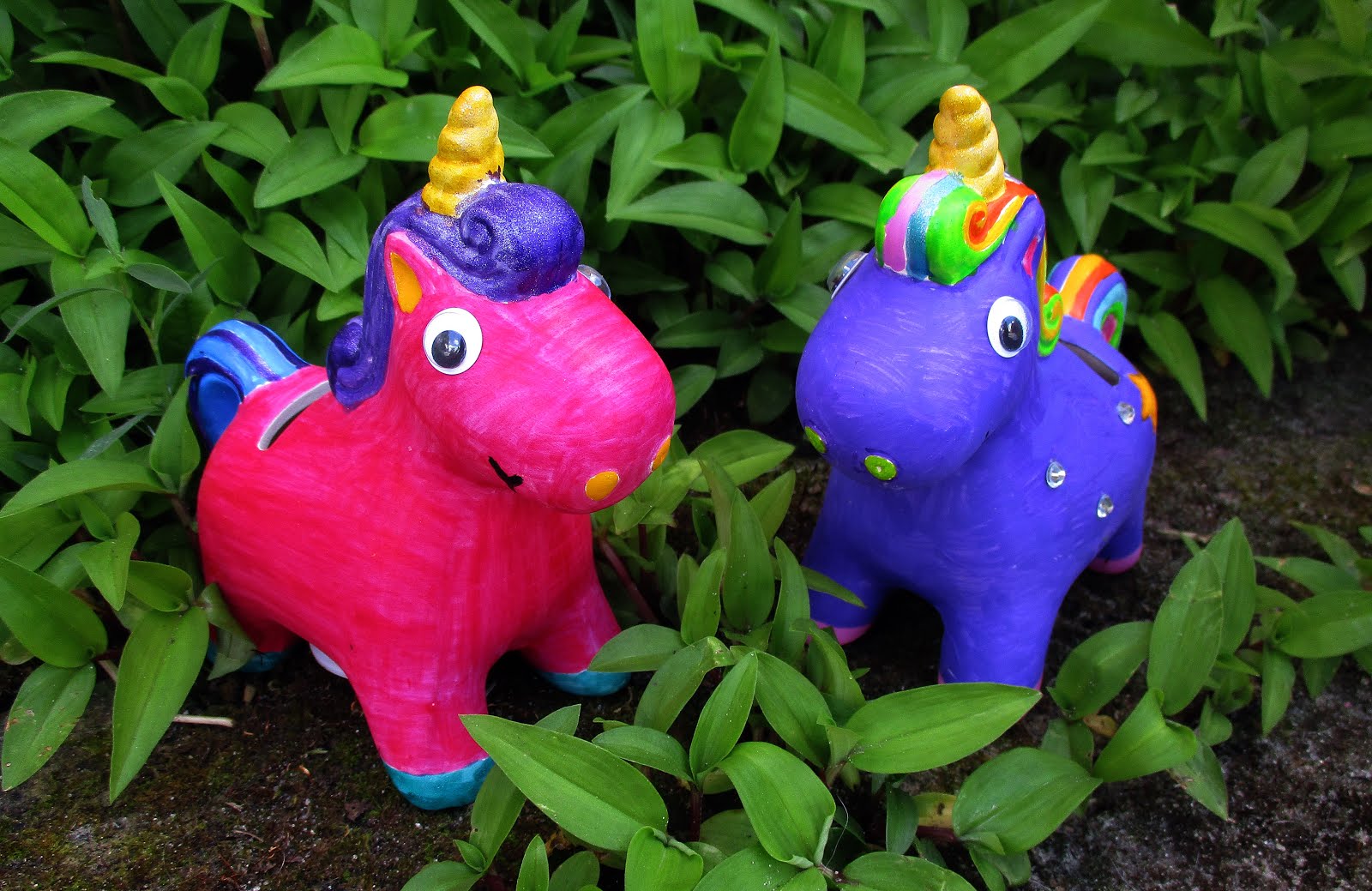 „Über die Einhörner hatte ich mich ganz besonders gefreut! Schon als wir das Paket ausgepackt hatten, hatte ich mir überlegt, wie ich meines wohl anmalen könnte. Man kann dabei sehr kreativ sein und sie auch kunterbunt bemalen. Mir gefällt auch gut, dass man sie unten mit einem Gummistöpsel öffnen kann! So geht nichts kaputt, wenn man das gesparte Geld wieder entfernen will.“