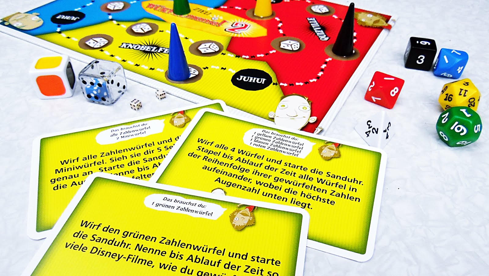 Wer alle Aufgaben meistert und sich weder von schweren Fragen noch sportlicher Betätigung abschrecken lässt, landet früher oder später im Ziel und kann sich Würfelmania-Champion nennen! Und der Weg dahin wird garantiert lustig!