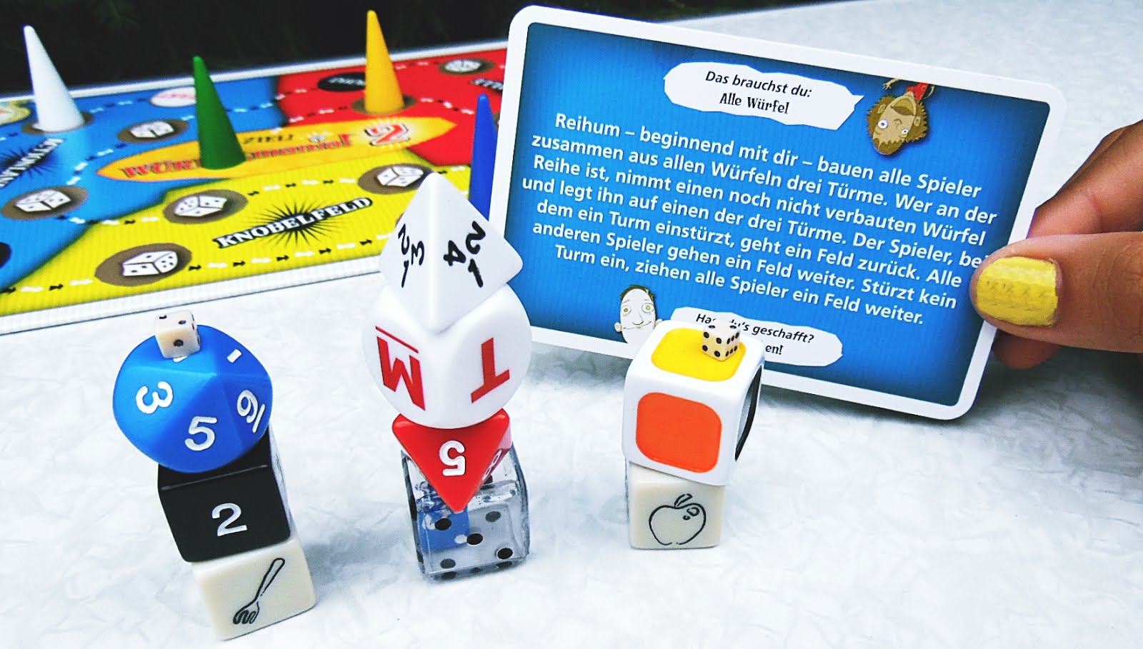Warum so viele? Das ist leicht erklärt … Bei Würfelmania 2 dreht sich alles um das Thema Würfel. Ob sieben Würfel in 30 Sekunden aufeinanderstapeln, so oft hoch hüpfen, wie es der Würfel vorgibt oder einen Begriff in 30 Sekunden nachzeichnen – bei Würfelmania 2 sind Abwechslung und Spaß vorprogrammiert, denn nicht alleine Würfelglück zählt hier.