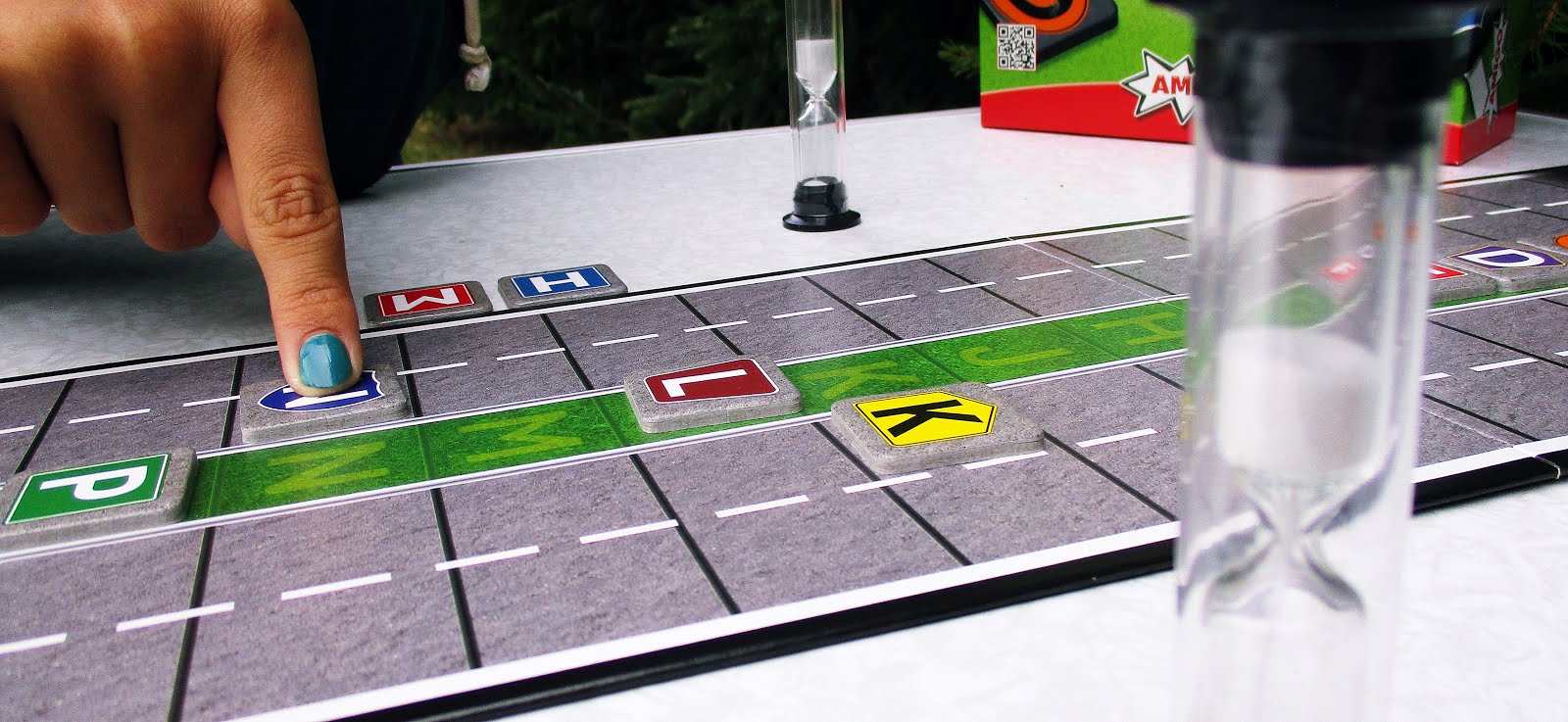 Bei WORD on the Street kommt es nur auf die Konsonaten an und davon sollte ein passendes Lösungswort auch noch möglichst viele haben! Denn jeder im Wort enthaltene Konsonant darf vom Mittelstreifen des Spielbretts auf die eigene Seite der Straße gezogen werden. Und das möglichst schnell, denn die Sanduhr läuft mit!