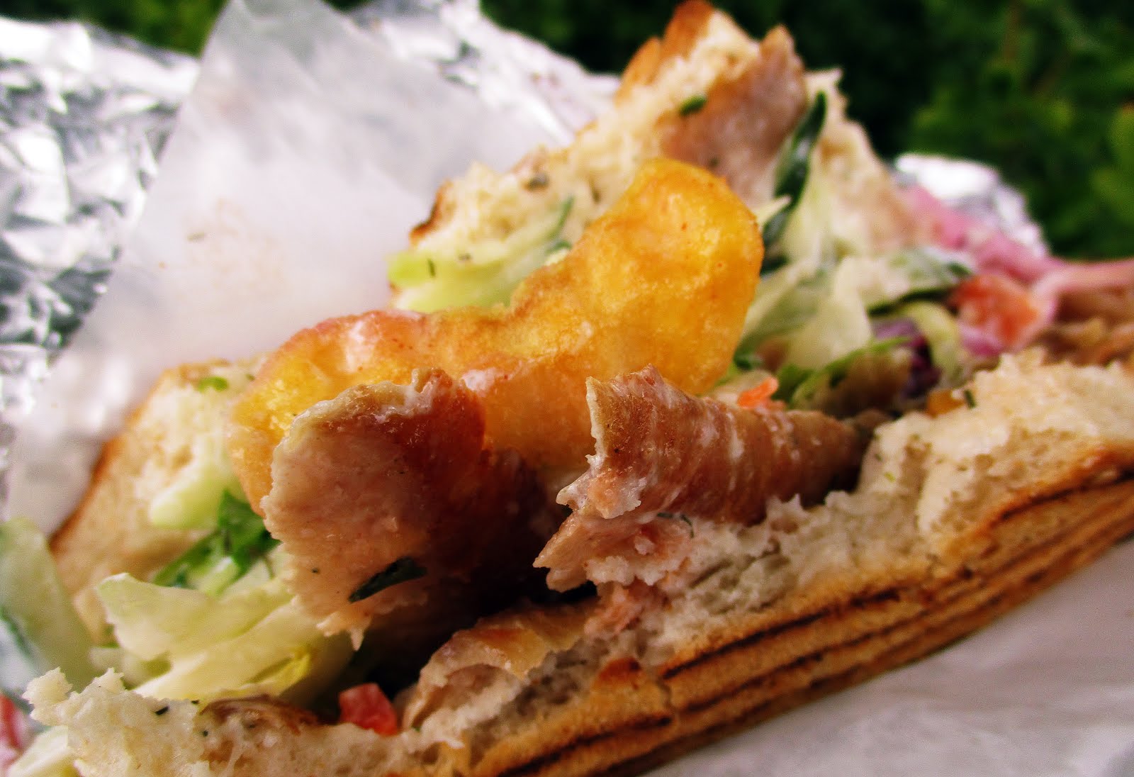 Bevor es dann zum Bus in Richtung nach Hause ging, machten wir noch einen kurzen Stopp beim Döner-Laden am Bahnhof. Unser Magen knurrte und wir hatten auch schon lange keinen Döner mehr verspeist … na gut den letzten vor ein paar Tagen in Italien, aber der zählt nicht! Könnt Ihr erkennen, was mitten auf Aimees Döner liegt? Pommes Frites!