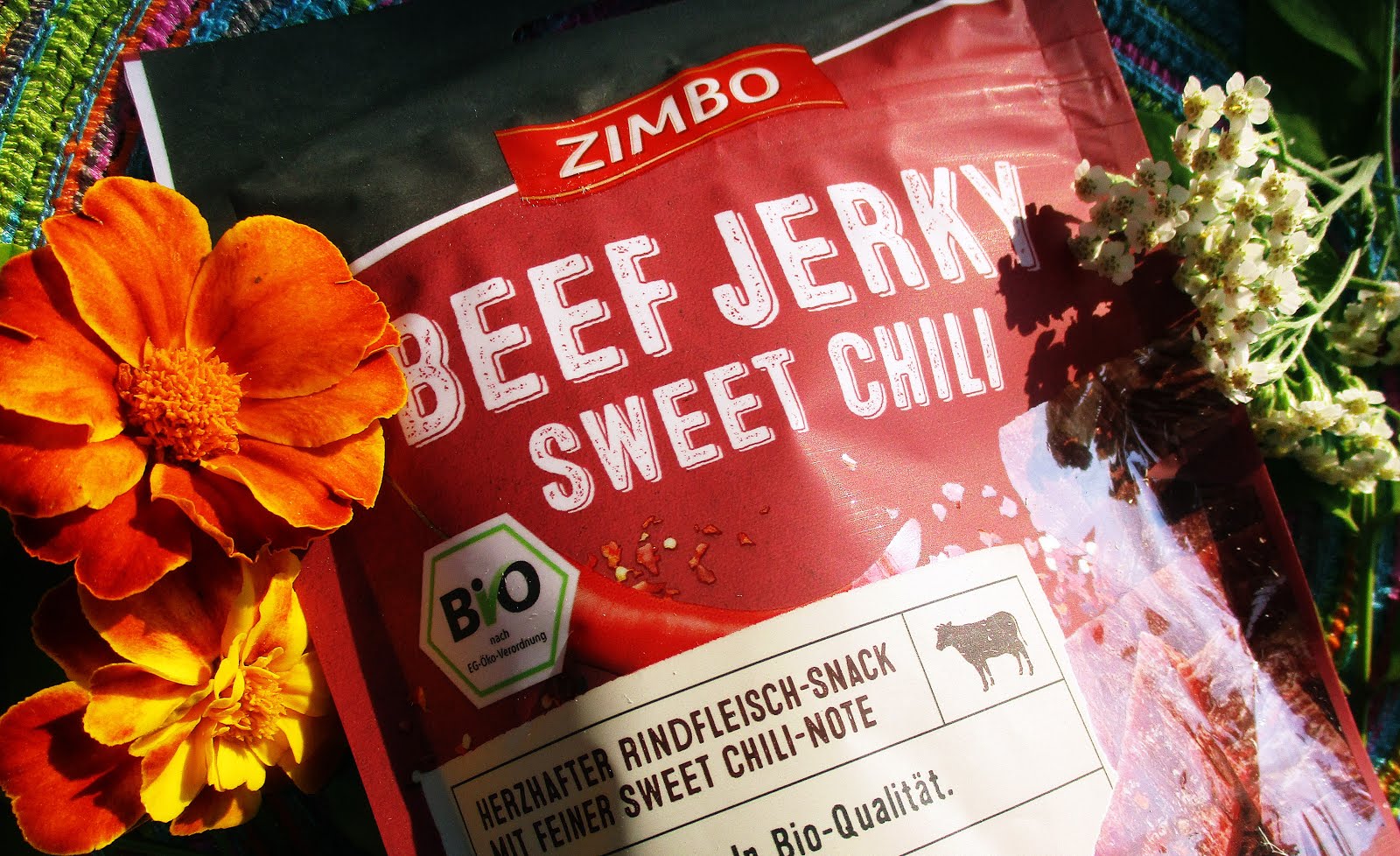 ZIMBO Beef Jerky „Sweet Chili“ ist ein echtes Naturstück, ehrlich und ohne Schnickschnack. Basis für die bissige Sorte aus reinem Fleisch sind langjährige Handwerkstradition und Rezepte. Diese machen aus einem erstklassigen Grundprodukt das perfekte kulinarische Snack-Erlebnis. ZIMBO Beef Jerky besteht zu 100 % aus Bio-Fleisch, das aus eigener Zucht von Bio Grassland Rindern stammt. ZIMBO Beef Jerky ist die ideale Abwechslung für anspruchsvolle, moderne Menschen, die Wert auf natürlichen Genuss legen. Im praktischen, wiederverschließbaren Beutel ist er der ideale Snack für unterwegs. Gibt’s auch in den Sorten „Classic“, „Pepper“ und „Honey BBQ“.