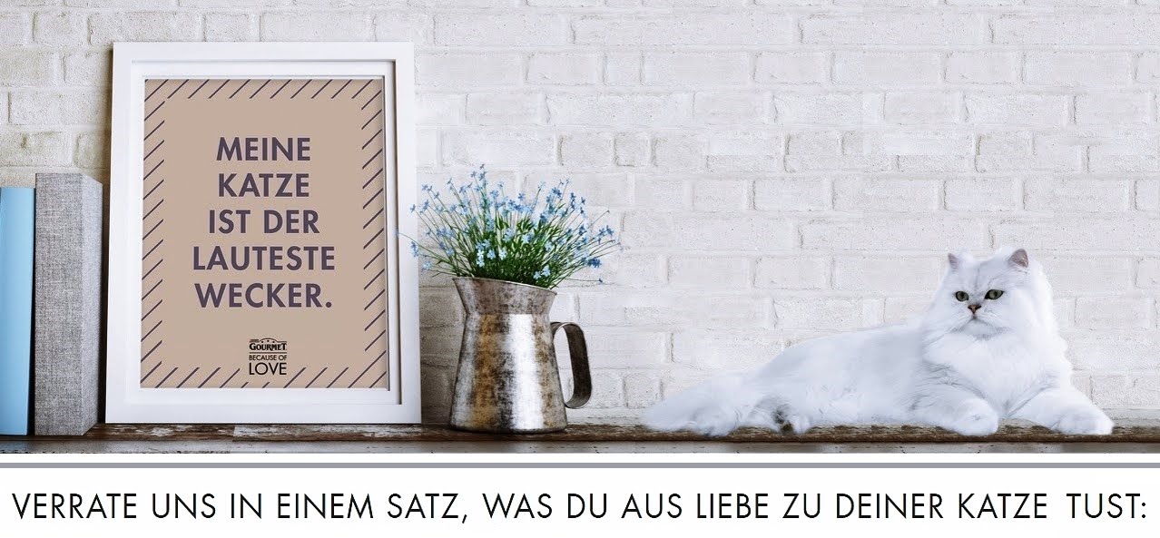 Was tut Ihr aus Liebe zu Eurer Katze? Dies möchte PURINA GOURMET seit Mitte November herausfinden und sucht Eure Antworten zu dieser Frage auf ihrer Kampagnenseite „Because of Love“. Verzichtet Ihr zum Beispiel auf Euren Lieblingsplatz, um Euer schlafendes Kätzchen nicht aufzuwecken? Macht Ihr kein Selfie ohne Euren Schmusetiger oder opfert Ihr sogar Eure heißgeliebten Sneaker, damit Eure Katze damit spielen kann? Dann seid Ihr genau die Katzenliebhaber, die PURINA im Moment sucht!