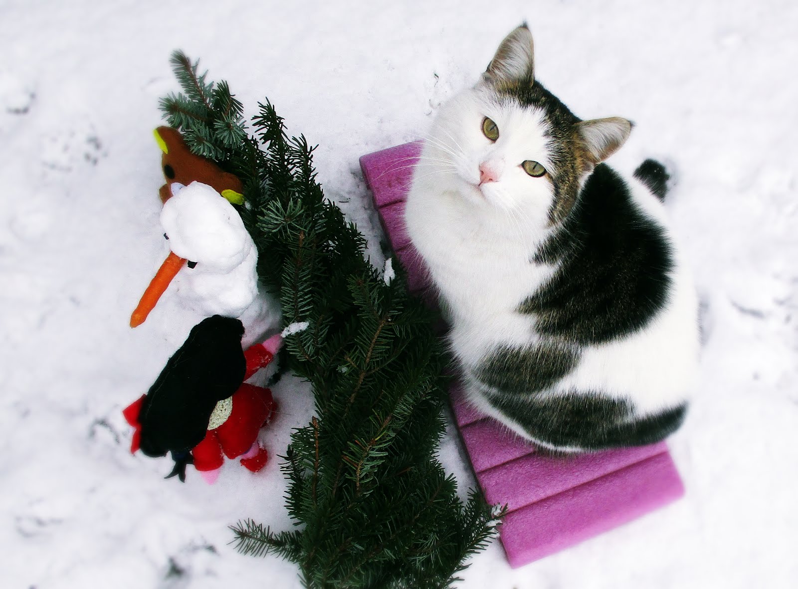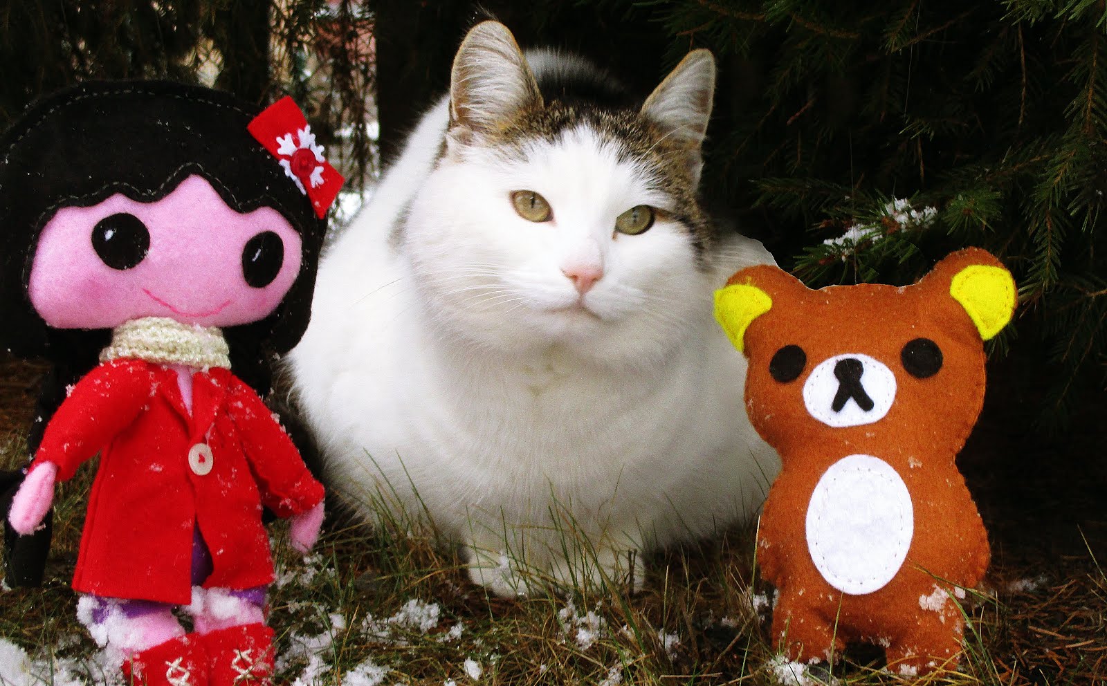 Am nächsten Morgen lag wie gesagt überall Schnee und wir nutzen die Gelegenheit, ein paar schöne Fotos von den beiden Filzfigürchen zu knipsen. Klein Maya war wie immer mit dabei und wich uns nicht von der Seite. Deshalb sind auch wieder ein paar schöne Fotos mit unserem vierbeinigen „Wollknäuel“ entstanden. Während es sich Maya unter der Tannenhecke bequem machte, „spielten“ Püppchen und Teddy mit dem Schnee …