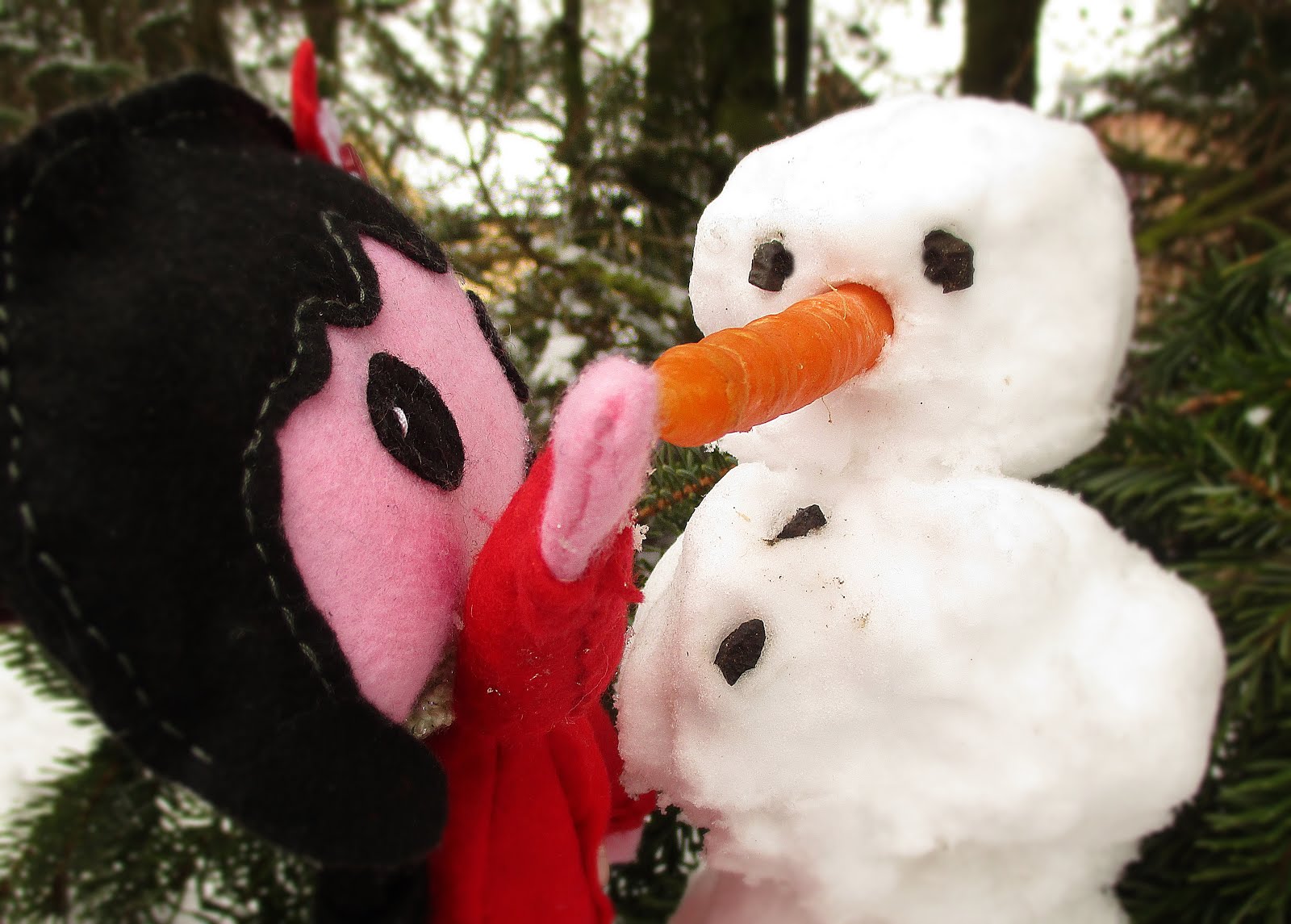… blickte uns ein Mini-Schneemann mit einer knackigen orangen Nase an …