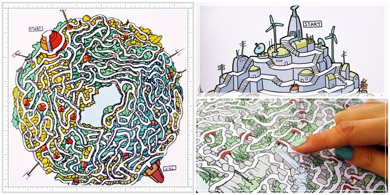 Meine Kinder lieben solche Labyrinth-Bücher. Da gibt es auch wirklich eine riesen Auswahl. Dass man die zur Entspannung nutzen kann, ist mir neu … aber gut, warum nicht?