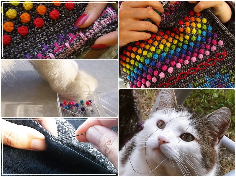 Wie Ihr sehen könnt, war Klein Maya während des Projekts ganz oft an meiner Seite, immer interessiert daran, was ich da gerade tue und wie die einzelnen Teile schnuppern! Dabei ließ sie sich auch nicht von etwaigen Vernähfäden abhalten, die ihr plötzlich im Gesicht baumelten! Am schönsten fand ich jedoch, als sie kurz vorm Ende des Projekts unter dem fast fertigen Schal einschlief und sich mit dem Gesichtchen noch mehr drunter kuschelte! Einfach nur allerliebst, unsere Kleine!