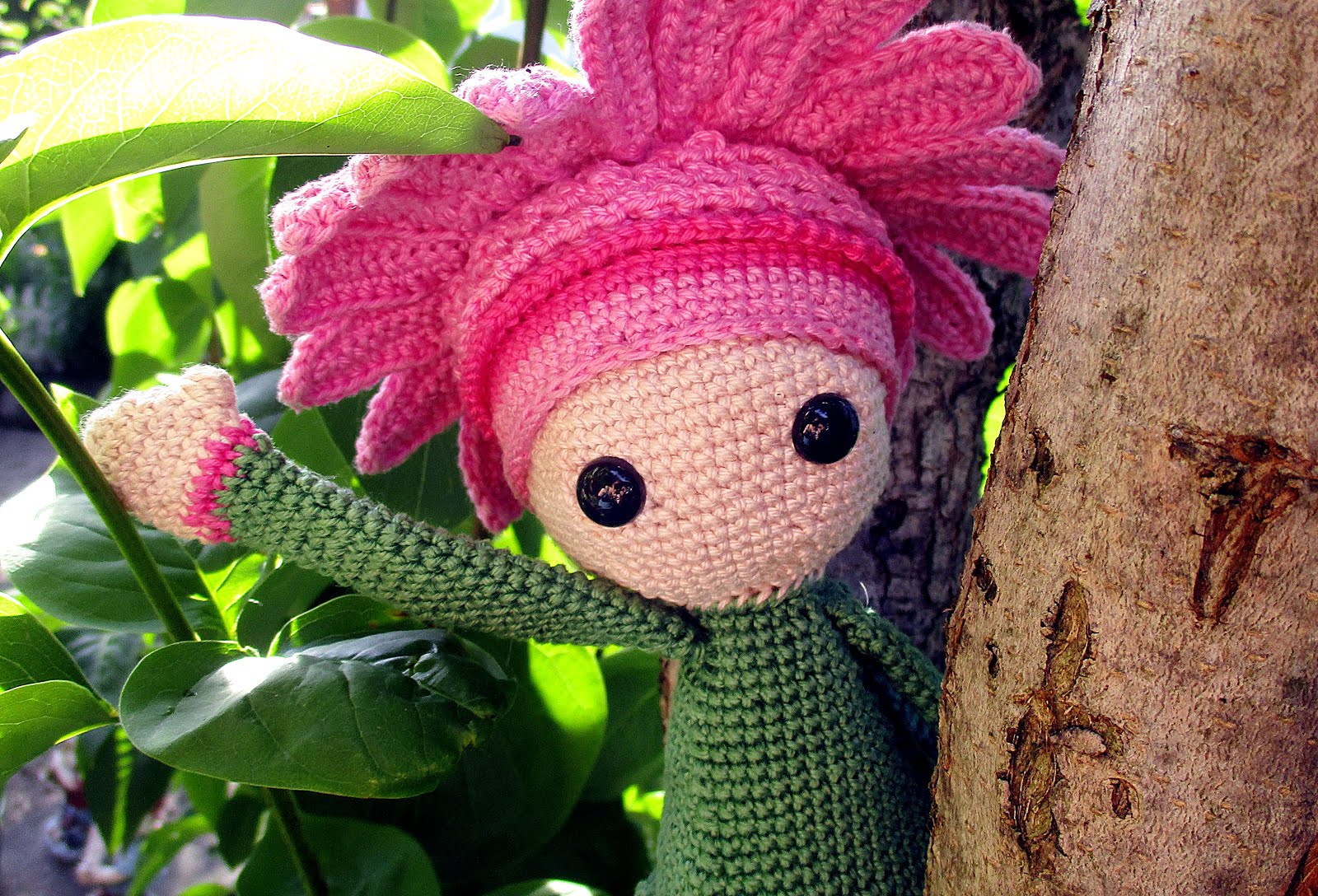 Ich habe auch schon Püppchen gehäkelt, aber dieses ist ganz entzückend. Das Blümchen passt hervorragend. Die Fotos aus dem Garten finde ich auch toll.LG Elke