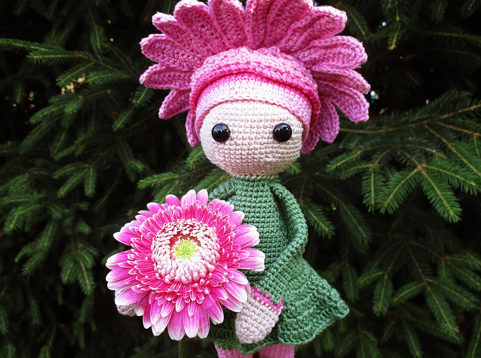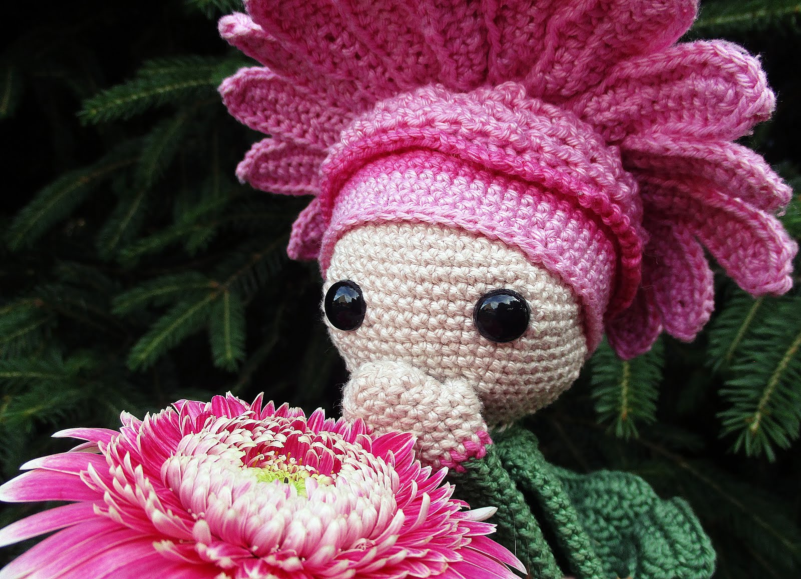 Neben der kleinen Gerbera hat der Designer Bas den Braver in den vergangenen Jahren noch viele viele weitere zuckersüße Blumenpüppchen erschaffen, deren Anleitungen man auf seiner Website „Zabbez“ in verschiedendsten Sprachen entdecken und erwerben kann! Das Besondere an diesen Püppchen ist, dass sie alle einen Kopfschmuck tragen, der wie die namensgebende Blume aussieht. Vor allem, wenn man die Rückseite des Püppchens betrachtet. Denn manchmal offenbart der Kopfschmuck erst von hinten seine wahre Schönheit!