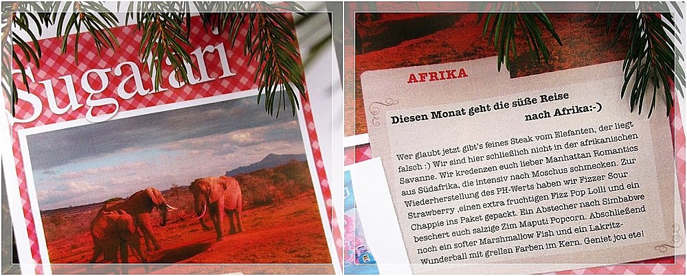 Also Afrika wäre auch ein Land, das ich sofort besuchen würde, wenn ich die Chance hätte. Egal, was ich dafür tun müsste *naja, fast*.Eine wunderbare Box, vielleicht gönne ich uns diese auch im nächsten Jahr. Wäre ja was ganz tolles. So durch die Welt naschen ^^.Alles liebe