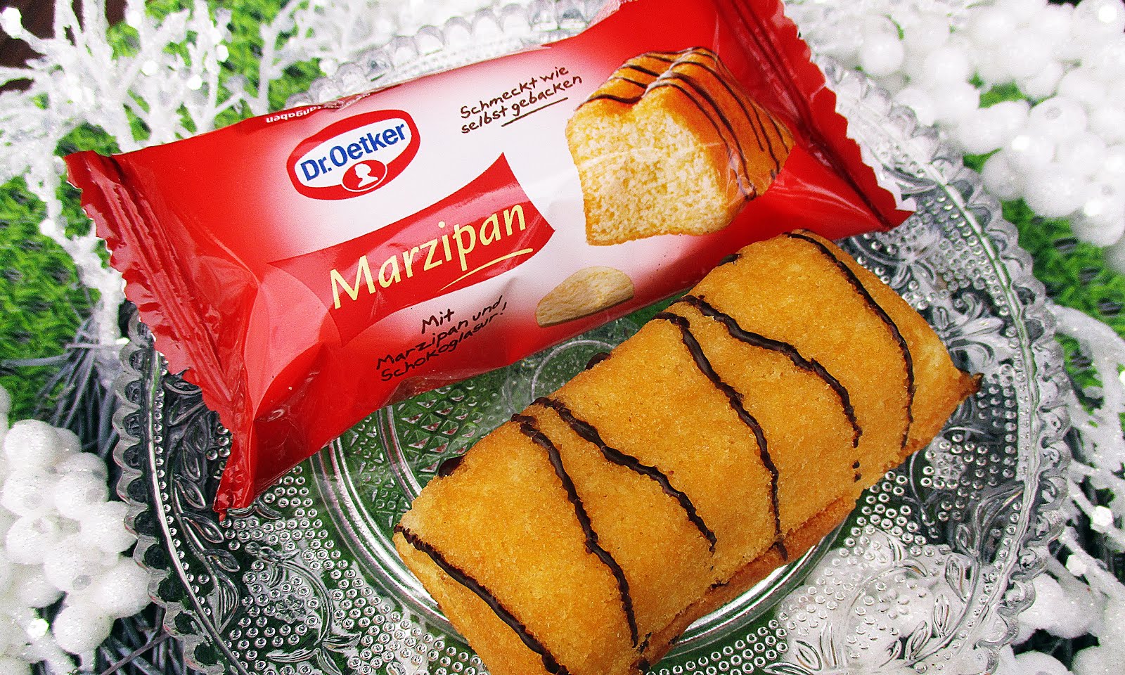 „Einfach lecker und perfekt für unterwegs! Die kleinen Marzipankuchen von Dr. Oetker sorgen mit einem saftigen Marzipanrührteig sowie einer feinen Schokoladenglasur für eine raffinierte Kuchen-Komposition und kleine Genussmomente. Die Kleinen Marzipankuchen von Dr. Oetker schmecken wie selbstgebacken und sind aufgrund ihrer Größe und Verpackung der ideale Kuchensnack zum Mitnehmen!“