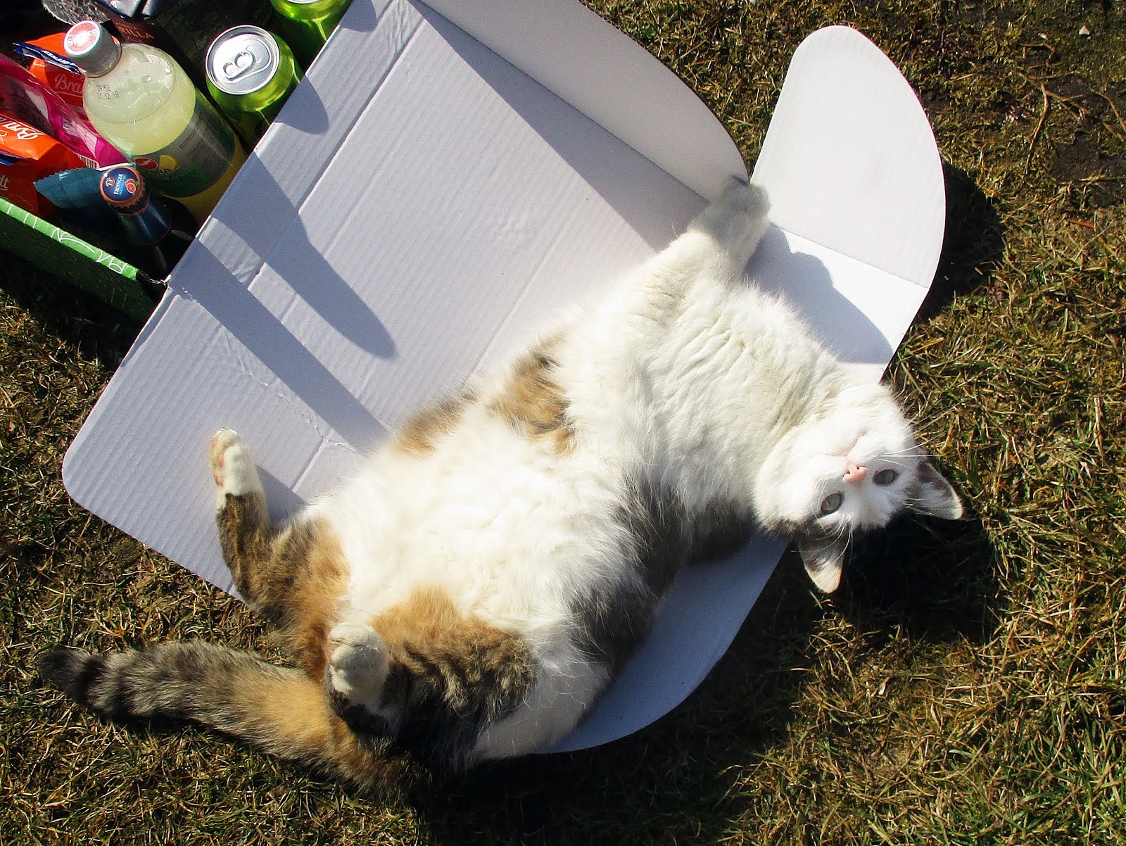 Ja, wir konnten sie nicht davon abhalten 🙂 Es war grad zu gemütlich auf dem Kartondeckel 😉