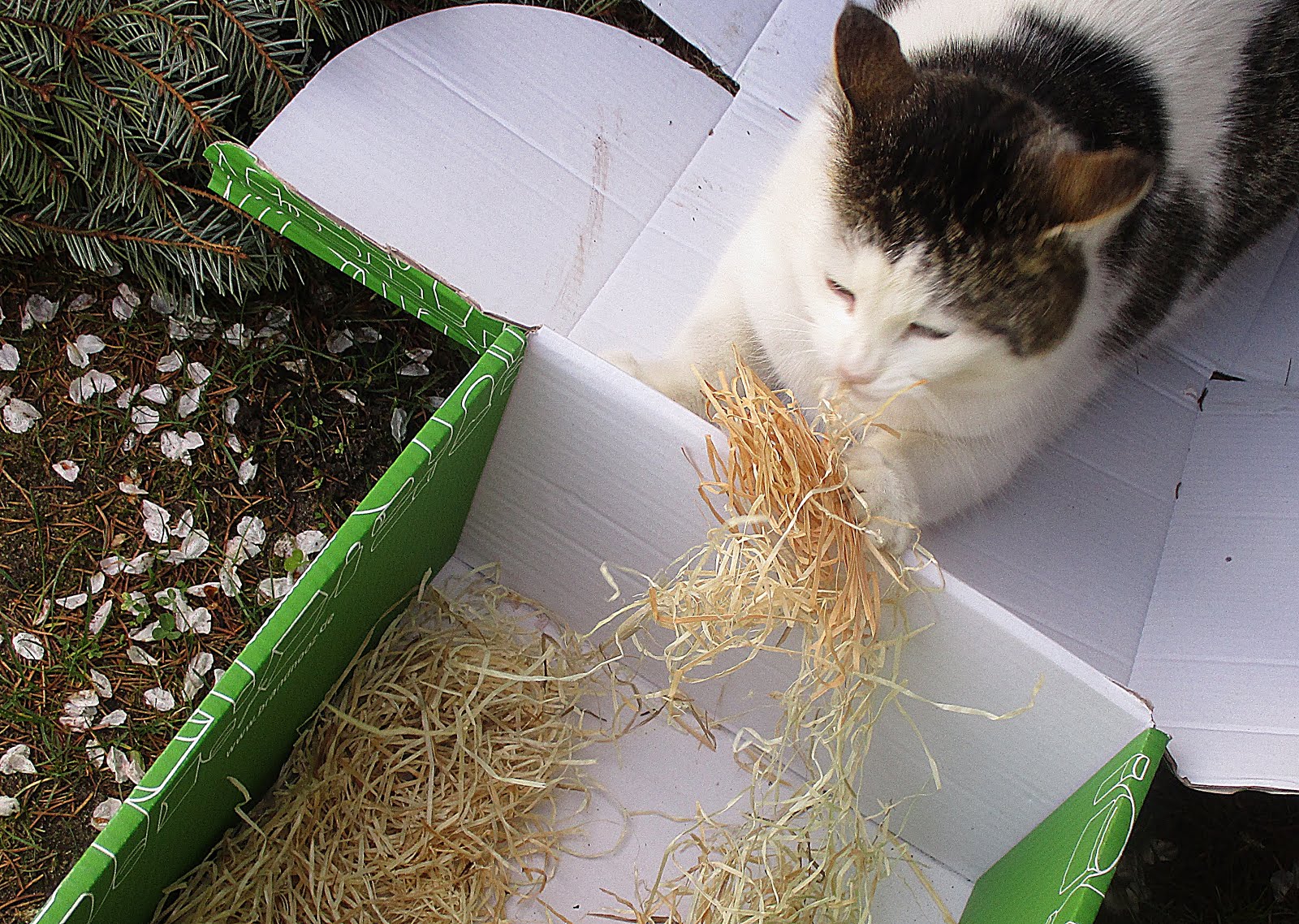 Aber bevor wir gewohnt in all die Tütchen schauen und die bunten Flaschendeckel aufdrehen, verraten wir Euch noch, dass es am Ende wieder ein paar schöne Fotos mit unserer Maya geben wird, die zwar heute nicht ins Titelbild, dafür aber während des Fotografierens stets und ständig in den Versandkarton gesprungen war und vergnüglich an der Holzwolle knabberte. Maya in CatLand sozusagen …