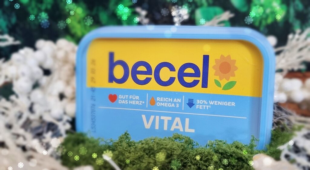 Um ehrlich zu sein, esse ich sehr, sehr wenig Margarine auf Brot, daher wird der Becel-Becher ein neues Zuhause finden müssen. Aber zum Glück kenne ich jemanden, der sich das gern millimeterdick aufs Brot schmiert – dort ist er also perfekt aufgehoben!
