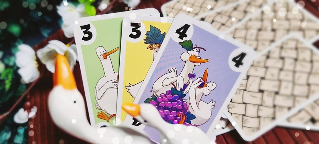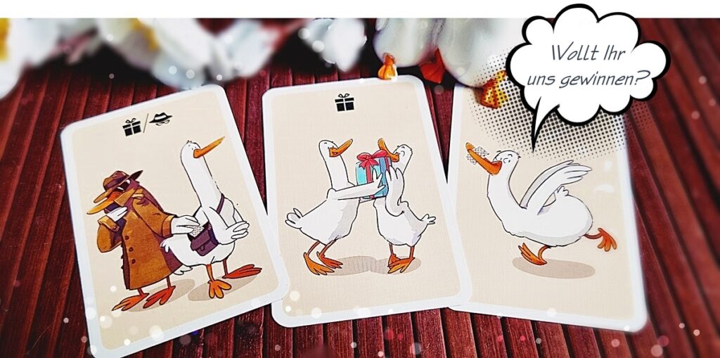„… hast du uns doch vorhin erzählt, Jana!“ Und das stimmt auch! Dank unserer sehr, sehr lieben Kooperation mit AMIGO dürfen wir wieder ein originalverpacktes Exemplar unseres heutigen Spieletipps an eine oder einen von Euch verlosen! Was Ihr dafür tun müsst? Ganz einfach: Verratet uns in einem Kommentar, welche gierige Gans (schaut gern nochmal aufs zweite Bild des Beitrags) Ihr am drolligsten findet. Erwähnt dabei bitte auch, dass Ihr am Gewinnspiel teilnehmen möchtet, und gebt eine Kontaktmöglichkeit an (z. B. Eure E-Mail-Adresse), damit wir Euch im Gewinnfall unkompliziert benachrichtigen können.