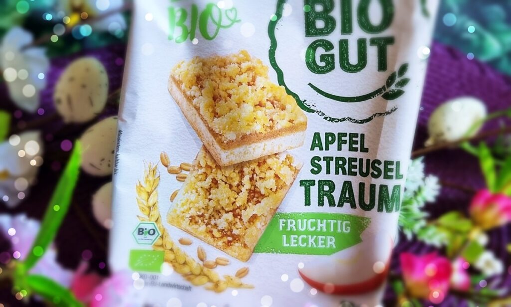 Vor ein paar Sekunden habe ich Euch noch erzählt, dass ich Kuchen am liebsten mit Obst mag – und dann, tadaa, entdecke ich einen „Apfel Streusel Traum“ in der Box. Wie passend! Mein erster Eindruck nach dem Öffnen war allerdings erst einmal: Hm, nach Kuchen sieht das irgendwie nicht wirklich aus. Traumhaft wirkte es auf den ersten Blick auch nicht unbedingt. Aber geschmacklich hat mich das Ganze dann doch positiv überrascht: Die kleinen, flachen und mungerechten Stücke schmecken deutlich besser, als sie aussehen. Schön fruchtig und auch gar nicht so trocken wie zunächst gedacht – eine wirklich interessante Idee.