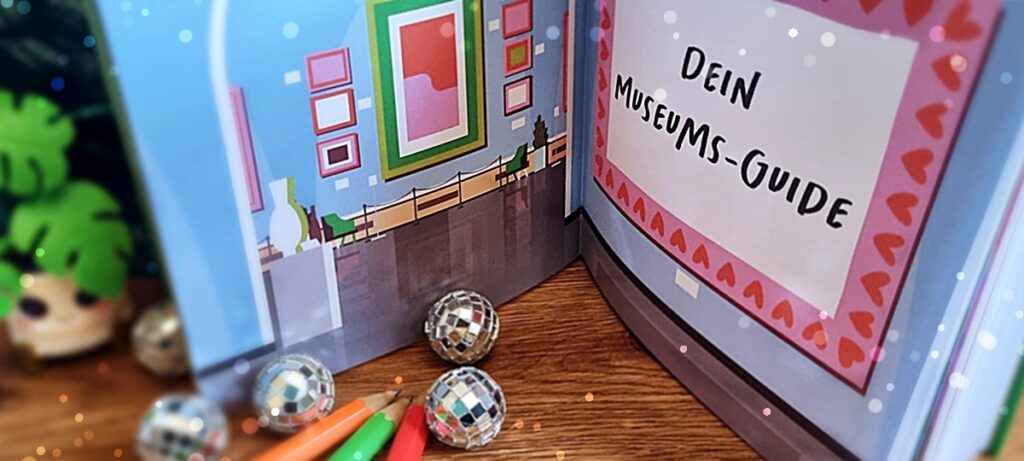 Kleiner Tipp am Rande: „Lege dir eine kleine Box, eine Mappe oder einen Umschlag an, die oder den du dafür nutzen kannst, deine Ausstellungsobjekte zu sammeln. So entsteht ein Fundus aus Fotos, Bildern, Zeichnungen, Notizzetteln, Einkaufslisten, Kassenbelegen und allerlei anderen Elementen, die du in dieses Journal einkleben und so in deinem Museum ausstellen kannst!“