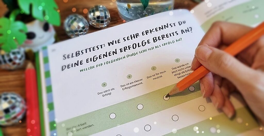 Konnte ich Euch bis hier hin schon mal neugierig auf Das Museum meiner Erfolge machen? Dann gibt’s noch ein paar spannende Details: Am Ende des Buches findet Ihr einen kleinen „Ausstellungskatalog“, in denen Ihr Eure ganz persönlichen Highlights der vergangenen Jahre eintragen könnt. Außerdem gibt es extra Seiten, auf denen die Begriffe „Imposter-Syndrom“ und „People-Pleasing“ ausführlich erklärt werden – perfekt, um diese Herausforderungen besser zu verstehen. Und das alles für gerade einmal 15 €! Wenn Ihr mich fragt: