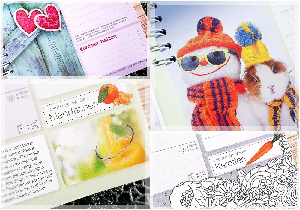 So kann man zum Beispiel am rechten Rand selbst erstellte To-do-Listen abhaken, im unteren Bereich Menüpläne für die aktuelle Woche notieren (die im Timer übrigens mit den niedlichsten Namen beschriftet wurden) und sich ganz nebenbei über die Vitamine der Woche informieren. In der ersten Januar-Woche sind dies übrigens Orangen, falls Ihr bei Eurem nächsten Einkauf vorsorgen wollt!