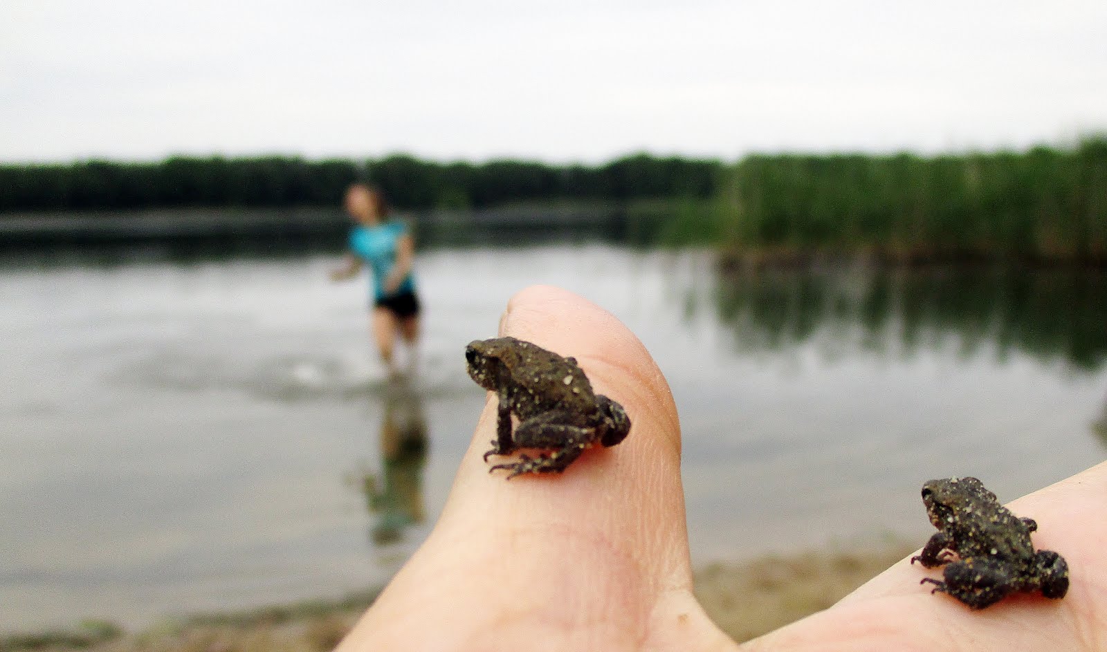 Während Aimee durchs Wasser hüpfte und ich am Strand meine Kirschen naschte, bemerkte ich auf einmal ein Gehüpfe und Gespringe um mich herum. Bei näherem Hinsehen stellten sich die kleinen Akkrobaten als Froschbabys heraus. So viele! War das ein Anblick und alle noch so mini klein! Ein paar schafften es bis zum Wasser und der Augenblick, als sie davon schwammen, war einfach nur allerliebst!